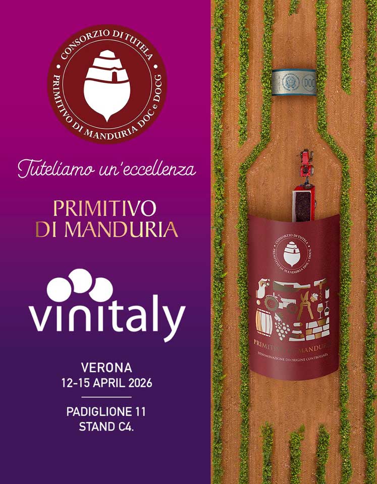 The Primitivo di Manduria Consortium is preparing to participate in the 58th edition of Vinitaly, the international wine and spirits fair that will take place in Verona from 12 to 15 April 2026. During the event, the Consortium will welcome professionals, enthusiasts, and foodies to Pavilion 11, Stand C4 , a space designed to showcase and offer tastings of one of the most representative wines of the Italian wine scene.