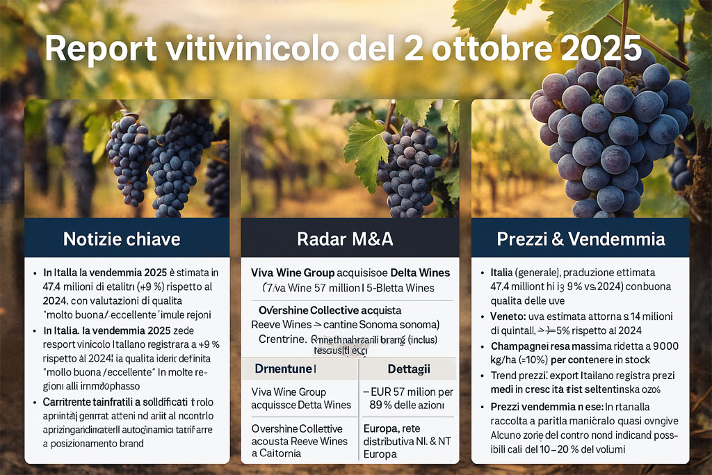 - In Italy, the 2025 harvest is estimated at 47.4 million hectolitres (8% compared to 2024), with quality ratings of “very good / excellent” in many regions.